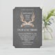 Diseño de asta de ciervo y cinta en acuarela rústica sobre fondo de pizarra negra.