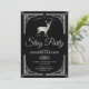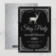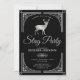 Sorprende a tus invitados con esta elegante invitación para una despedida de soltero que presenta un borde ornamentado plateado y un hermoso ciervo con tipografía elegante sobre un fondo negro. Simplemente agrega los detalles de tu evento en esta plantilla fácil de usar para hacer que sea una invitación única. Voltea la tarjeta para revelar un hermoso patrón de estrellas plateadas en la parte posterior de la tarjeta.