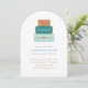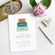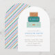 Una pila de maletas coloridas se encuentra en la parte superior de esta caprichosa invitación para una fiesta de despedida. Debajo de la ilustración de equipaje hay espacio para el nombre del invitado de honor y los detalles de la fiesta. La parte posterior de la tarjeta presenta un patrón de franjas diagonales coordinadas. ¡Esta invitación es perfecta para cualquiera que esté a punto de embarcarse en una nueva aventura!