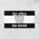 Esta tarjeta de gabinete en blanco y negro tiene tres campos. Juntos, los campos negros dicen ' nuestra oficina se ha mudado'. Utilice el campo blanco para personalizar de su postal con el nombre, la dirección y el número de teléfono de su empresa.