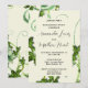 Esta invitación de plantilla presenta hojas de destellos verdes falsas y un diseño caprichoso con una superposición de color ecru para su texto. Un diseño elegante que se puede utilizar en cualquier momento del año.