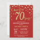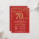 Invitación de diamantes de cumpleaños 70 de rojo y
