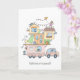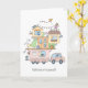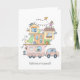 Un pequeño coche remolca un poco más de 3 pisos de remolque de la familia alta que ha sido mejorado de forma irregular. En la azotea hay un pequeño huerto con espantapájaros. En la segunda planta hay una bañera abierta. Una lata de basura en la parte trasera del remolque. Se está secando algo de ropa en el viento. Varios mascotas familiares incluyen un perro, un gato, un pollo e incluso algunos peces de colores. Un niño pequeño ondea desde la ventanilla del remolque.