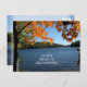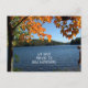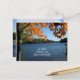 Follaje otoñal alrededor de un lago, postal fotográfica para anunciar un nuevo discurso. Personalizar con texto delante y atrás sobre una imagen de follaje brillante en el borde de un lago. Mi propia fotografía del lago Gregg, New Hampshire.