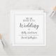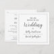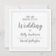 Una invitación de diseño gris y blanco simple y limpia con palabras claras y bordes cuadrados. Letras blancas sobre gris en la parte frontal. Borde de línea delgada en el reverso.