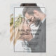 Celebra tu día especial con nuestra elegante invitación "Boda de" Fotos de dos caras! Esta bella invitación le permite mostrar dos preciadas fotos, una a cada lado, creando un toque personalizado que capta su historia de amor. El diseño elegante incluye texto de personalizable, que le permitirá incluir sus nombres, fecha de boda, detalles del lugar y un mensaje de sentidos para sus huéspedes. Una superposición de fotos en blanco sobre tu foto la hace suave y soñadora haciendo el texto más visible y legible. El centro de la obra es un guión elegante con remolinos decorativos y nombres de parejas. En la parte posterior puede añadir la misma o otra foto. Texto adicional opcional como el sitio web de su boda sobre un degradado - o borrar. Imprimida con material de primera calidad, esta invitación exubera sofisticación con detalles nítidos y colores vivos. Ya sea que prefiera un tema clásico, moderno o rústico, nuestra plantilla fácil de editar asegura que su diseño se ajuste perfectamente a la estética boda. Haga una impresión duradera en su familia y amigos con este toque único e inolvidable. Ideal para ceremonias formales, bodas de destino o reuniones íntimas, esta invitación a la fotografía de doble cara es una manera atemporal de invitar a sus seres queridos a compartir en su alegre celebración. Pida hoy y crea una primera impresión inolvidable!