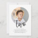Una moderna Invitación de cumpleaños con una foto redonda y la palabra "dos" en un tipo de letra de caligrafía, ¡perfecta para el segundo fiesta de cumpleaños de tu hija!