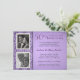 Hermosas invitaciones para la fiesta de aniversario de bodas número 50 con inserciones enmarcadas para dos fotos sobre fondo de pergamino simulado púrpura vintage, y borde de damasco. Sube tus fotos y agrega los nombres, fecha y detalles. Cambia el texto para personalizarlo fácilmente para otras ocasiones especiales y celebraciones de hitos felices: fiestas sorpresa de 25, 30, 40, 45, 60, 65, 70 años, bodas, guardar la fecha, o cualquier evento único. Tamaño mostrado: 4,5 x 6,25. Haz clic en Personalizar para cambiar el tamaño y las opciones de acabado del papel.