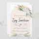 ¡Celebra a tu pequeño con esta invitación de shower floral boho y hierba de pampas! La hierba de pampas y un arreglo floral y de eucalipto ayudan a crear un aspecto rústico y sofisticado que es perfecto para tu revelación de género, baby shower o desayuno de novia. La paleta de colores neutros de beige, verde y blanco ayuda a hacer de esta una invitación ideal para fiestas y revelaciones de género neutro. La combinación de texto en cursiva y tradicional une el aspecto para un sentimiento único y vintage.