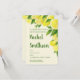 Agregue un poco de sol a su evento con esta invitación de limonero amarillo y verde. Un limonero completo con limones y hojas adorna suavemente el lado de esta invitación enmarcando el texto verde vintage y sofisticado para una apariencia única que es imprescindible para su despedida de soltera, shower de boda o baby shower. Esta invitación es igual de rústica y moderna con sus imágenes de limón y texto temático cursivo y moderno. Agregue un poco de entusiasmo a su evento con esta invitación de limón.