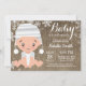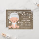 Invitación de ducha de bebé rústica de invierno. Invitación de ducha de bebé para niño o niña. Invitación de ducha de bebé de vacaciones de invierno. Copos de nieve grises y blancos. Fondo de arpillera. País vintage retro. Para una mayor personalización, haga clic en el botón "Personalizar" y use nuestra herramienta de diseño para modificar esta plantilla.