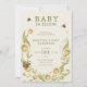 Esta invitación a la ducha de bebé en Bloom All-in-one presenta un diseño de flores silvestres vintage, mariposa y abejas - margarita | flores de manzanilla entrelazadas para enmarcar el texto cuidadosamente elegido. Una mariposa se sienta entre el diseño botánico de la flor silvestre. mientras las abejas vuelan. En el reverso se encuentran los detalles de la ducha para bebés, junto con el código QR para el registro de futuras madres. Simplemente personaliza el guión para tus necesidades con este dulce diseño.