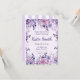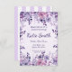 Esta invitación para jardín de flores silvestres de lavanda es nada menos que un sueño de una noche de verano que captura el misterio y la tranquilidad de un campo de lavanda y glicinias. Un hermoso ramo de flores silvestres púrpuras y lavanda rodea fuentes elegantes y sofisticadas que hacen de esta la invitación perfecta para su jardín, cumpleaños, despedida de soltera, boda o baby shower. Un fondo con degradado púrpura lo une todo para una creación etérea de lavanda que es perfecta para su fiesta.