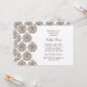 Un elegante y vintage patrón de damasco decora esta invitación con un papel de champán brillante.