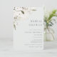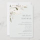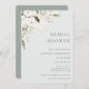 Elegante Invitación Bohemia Floral Bridal Shower. Flores de acuarela blanca y delicada disposición follaje verde sobre el color de fondo del sabio polvoriento claro.
