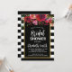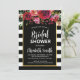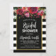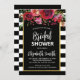 Ayudemos a celebrar a la encantadora novia a estar con esta hermosa invitación a la ducha de novia con rayas negras que incluye una ráfaga de rosas de color rojo y un falso Relieve metalizado de oro.