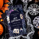 Traiga lo espeluznante a su próxima ducha de Halloween con esta invitación de ducha gótica vintage. Un marco de libros rústicos y pociones se mezcla con rosas polvorientas de color vintage, flores de magnolia y cristales para crear una invitación única que es perfecta para su próxima ducha de boda, ducha de novia o ducha de bebé. La combinación de texto blanco tradicional y espeluznante la convierte en la invitación perfecta de Halloween para su próximo evento.