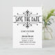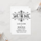 Sencillo y elegante anuncio de "Save the Date" ornamental elegante en blanco y negro con un sofisticado borde floral ornamental de estilo art déco. Fácil de personalizar, simplemente agregue los detalles de su boda en los campos de texto proporcionados. Haga clic en "Personalizar" para encontrar más opciones de personalización.