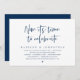 Tarjeta de invitación de elopamiento de boda con tema de escritura en azul naval moderno (Ahora es tiempo de Celebrar). Es perfecta para su recepción de elopamiento de boda / fiesta de celebración después de la boda. Agregue sus detalles en fuente / letra negra coincidente.