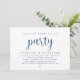 Tarjeta de invitación de elopamiento de boda con tema de escritura en azul naval moderno (Fiesta Felices para Siempre). Es perfecta para su recepción de elopamiento de boda / fiesta de celebración post-boda. Agregue sus detalles en fuente / letra negra coincidente.