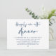 Tarjeta de invitación de elopement de boda con tema de Escritura Moderna en Azul Marino (Cena de Felices para Siempre). Es perfecta para su recepción de elopement de boda / fiesta de celebración post-boda. Agregue sus detalles en letra / tipografía Azul Marino coincidente.