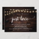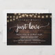 Hermosa celebración de fiesta de amor sin lujos, Anuncio de Elopement de Boda / Tarjeta de invitación, en diseño de luces de cuerda de madera de granja rústica. Esto es perfecto para su recepción de boda y fiesta de celebración después de la boda. Agregue sus detalles en la fuente / letra coincidente.