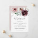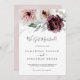 Estas tarjetas de invitación floral romántica para elopement tienen un bonito diseño elegante. El moderno diseño rústico de boho cuenta con románticas flores acuáticas en tonos suaves de burdeos, malva, rosa y crema blanca con hojas verdes. Personalice la tarjeta con los detalles de su matrimonio y utilice la sección de plantillas de la parte posterior para obtener información sobre la recepción, para anunciar un cambio de dirección o para cualquier otro detalle que desee compartir.