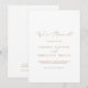Estas delicadas tarjetas de invitación de elopement de caligrafía dorada tienen un hermoso diseño moderno. El romántico diseño minimalista presenta una encantadora y elegante tipografía de champán amarillo dorado sobre un fondo blanco con un aspecto limpio y sencillo. Personalice la tarjeta con los detalles de su matrimonio y utilice la sección de plantillas de la parte posterior para obtener información sobre la recepción, para anunciar un cambio de dirección o para cualquier otro detalle que desee compartir.