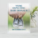 Padres sosteniendo manos y zapatos azules para bebés. El texto, el nombre y la fecha se pueden editar individualmente. Las páginas restantes de la tarjeta son de personalizable.