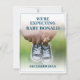 Padres sosteniendo manos y zapatos azules para bebés. El texto, el nombre y la fecha se pueden editar individualmente. Las páginas restantes de la tarjeta son de personalizable.