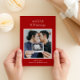 Comparte la feliz noticia de tu embarazo este año con una tarjeta de vacaciones anunciando que vas a celebrar un nuevo año con nuevas bendiciones y compartirás con tu familia y amigos. Un clásico fondo rojo festivo permite que tu foto brille y mientras que el reverso tiene espacio para un mensaje más largo y una dirección de retorno pre-impresa para un envío por correo fácil. Fotografía cortesía de Sofyan Sasono Agung