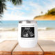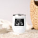 Una minimalista foto de una invitación de embarazo con un vaso de agua. Este tumbler de vino cuenta con un minimalista texto de máquina de escribir y una foto de ultrasonido. La foto es sólo para fines de colocación y puede ser reemplazada por cualquier foto que elija. Todo el texto se puede personalizar con cualquier texto de su elección. La manera perfecta de regalar invitación de embarazo para cualquier abuela que ame el vino.