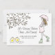 Mamá caprichosa para caminar con paraguas y botas de lluvia. Hay dos polluelos en primer plano y la prueba dice: ¡está lloviendo bebés, vienen mellizos! Personaliza con tu nombre y fecha de vencimiento.