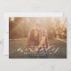 Esta dulce invitación de embarazo muestra la frase "creemos en milagros" en un sucio Relieve metalizado de oro falso sobre una foto de sangre completa, perfecta manera de anunciar un embarazo después de enfrentar la infertilidad.