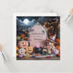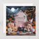¡adorablemente jovial invitación de embarazo de Halloween! Con un lindo oso de peluche vestido con un gorra de brujas rosado y corbata de arco, parado al lado de un tablero de mensajes rosa pastel para que tu bebé personalizado revele texto, este diseño es perfecto para anunciar "¡Es un Chica!" durante la temporada de otoño. Rodeado de elementos jocosos de Halloween como calabazas rosas suaves y toques sutiles de miedo, este encantador diseño es ideal para revelaciones de medios sociales, tarjetas o invitaciones a duchas de bebé.