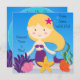 ¡Usted puede modificar fácilmente nuestras invitaciones rubias del cumpleaños para requisitos particulares de la sirena antes de ordenar con el nombre de su niño y ir de fiesta específicos! ¡Una sirena cabelluda rubia linda, una estrella de mar, una alga marina, y un agua azul brillante hacen que este tema bonito de la sirena invita a un golpe!