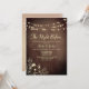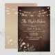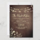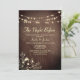 Elegante invitación a la cena de "Noche Antes" con luces de cuerda románticas, textura de grano de madera y arte floral dorado. Personalice para su reunión previa a la boda e impresione a sus invitados con un toque rústico elegante.