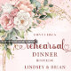 Celebra tu velada especial con estilo con esta elegante invitación a la cena de ensayo que presenta acentos de oro rosa, flores rosadas polvorientas y blush, y suave vegetación de eucalipto. Diseñado para una romántica atemporal y un encanto boho moderno, establece el tono perfecto para el fin de semana de tu boda e impresiona a los invitados con una belleza refinada e inolvidable.