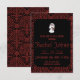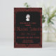 Esta espeluznante invitación para una despedida de soltera es tan espantosa como glamurosa con una adorable novia esqueleto en la parte superior rodeada de intrincado filigrana rojo para ayudar a crear un aspecto vintage. Tanto un texto embrujado como de estilo inglés acompañan al lujoso fondo de filigrana roja para un aspecto sofisticado y espeluznante que lo hace perfecto para su próxima boda o despedida de soltera. Si estás teniendo una boda o despedida de soltera de Halloween, ¡entonces esta invitación de Halloween para novias es justo para ti!