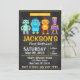 Invitación de fiesta de cumpleaños estilo pizarra de robot divertido. Esta invitación puede ser para cualquier ocasión, ya sea un primer cumpleaños o un décimo cumpleaños.