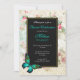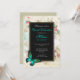 Una bonita invitación para una variedad de eventos, como una despedida de soltera o una fiesta de jubilación o cumpleaños. Diseñado con una elegante mariposa verde. Un marco negro con un borde dorado debajo. El fondo es un patrón de collage vintage con rosas y un aspecto antiguo y desgastado.