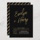 Celebra tu día especial con esta sencilla y elegante invitación de fiesta. Este diseño presenta un script de pincel chic con un diseño limpio con una combinación de colores negro y dorado. Puedes personalizar el texto, la fuente y los colores. Más suministros para eventos están disponibles en mi tienda BaraBomDesign.