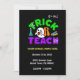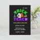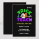 Esta divertida y personalizable tarjeta de invitación de Halloween con el tema Truco o Enseña seguramente deleitará a tus invitados para tu evento escolar de Halloween.