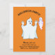 Hermosa invitación de fantasmas Trumpy y Munchy de Halloween. Hay un patrón de calabaza sobre fondo naranja en el reverso. Todos los textos y números están listos para ser personalizados.