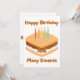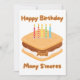 Esta invitación presenta un diseño con las palabras "Feliz Cumpleaños y Muchos S'mores" en una fuente de impresión más azucarada que muestra letras marrones con contorno bronceado que muestra un s'more de estilo de dibujos animados coronado con cinco velas de cumpleaños de diferentes colores en este tema y estilo de cumpleaños. Impreso en un papel clásico, todo alrededor de 17,5 pt de grosor con un acabado mate sin revestimiento con una textura de cáscara de huevo hecho e impreso en los EE. UU. con "Feliz Cumpleaños" impreso en la parte posterior.