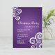 Plantilla de invitación para fiesta de Navidad/boda/cena con elegantes remolinos púrpura. Impresiona a tus amigos con este divertido diseño de invitación. ¡Totalmente personalizable!