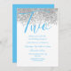 Los Purpurinas de plata azul Los niños de 2 años fiesta invitan a la bella Purpurina de oro de Faux Confetti a una invitación. Colección coincidente en Nicho y tienda Nest. Diseño Cortesía de Studio Dinamarca