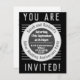 Invitación de aniversario de bodas de plata. Colores de estilo gris plateado claro sobre fondo negro y en un diseño audaz. Tarjeta de invitación de fiesta de aniversario de bodas de plata de la pareja.