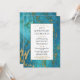Una elegante invitación de aniversario con un rico mármol verde azulado entrelazado con oro y un marco dorado.