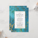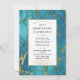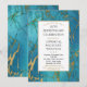 Una elegante invitación de aniversario con un rico mármol verde azulado con vetas doradas y un marco dorado.
